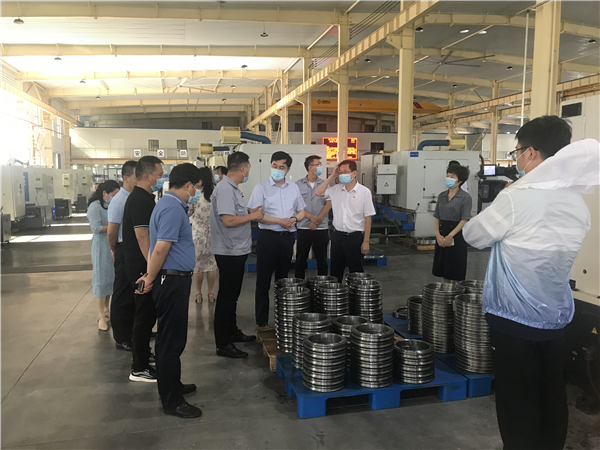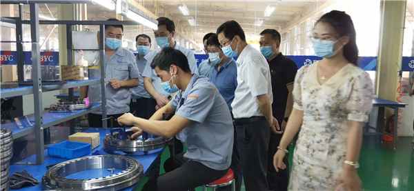 魏險峰副市長一行到我司后,實地了解我司主營的交叉滾子軸承、YRT轉(zhuǎn)臺軸承和交叉圓錐滾子軸承生產(chǎn)情況。公司領(lǐng)導(dǎo)魏紀(jì)偉介紹了企業(yè)遷入產(chǎn)業(yè)集聚區(qū)后的經(jīng)營情況和企業(yè)的未來發(fā)展規(guī)劃。